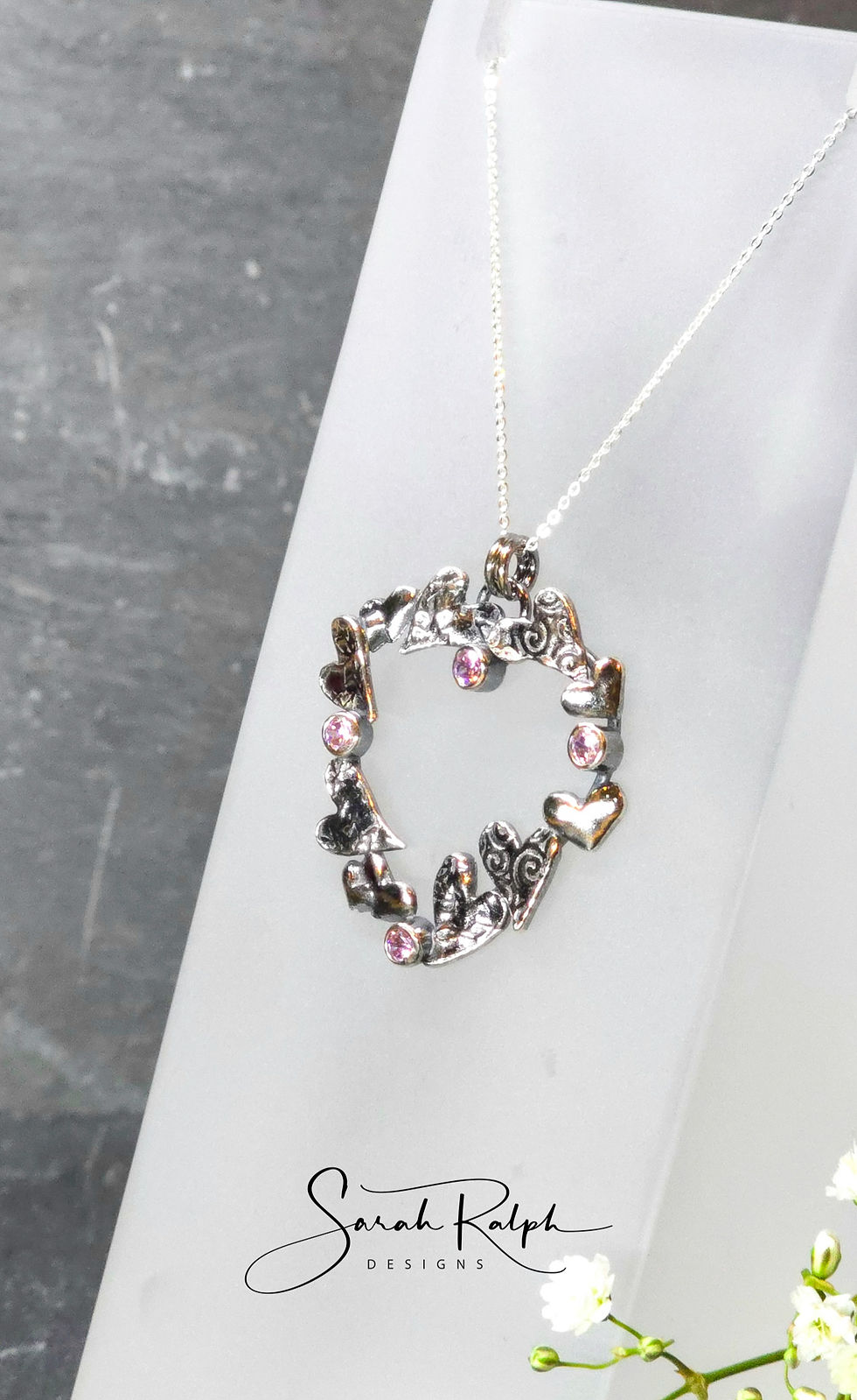 Heart Floral Chelsea Pendant With Deep Pink Stones